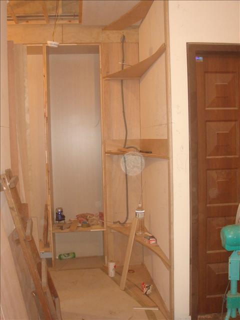 主臥室裡的小更衣間,經由上回與蔡大哥溝通後,也增加了兩排抽屜,看起來還只是雛型。